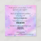 say big thank you and show your love and customer appreciation with this modern script card with the heart and iridescent opal background, inviting them to purchase again, leave a review and tag you on social media. You can change the colours of the heart, text and icons to fit your branding