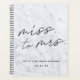 Custom-designed bridal wedding planner notebook featuring "Miss. to Mrs." modern calligraphy design on grey marble background.