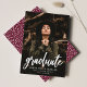 Simple graduation announcement featuring the graduate's photo with "graduate" in a trendy white script font. Personalise the front of the photo graduation announcement by adding the graduate's name, school name, and graduation year. The announcement reverses to display a pattern of white sprinkles with a maroon background or colour of your choice.