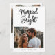 Modern Script Married & Bright Newlywed Photo Holiday Card