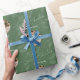 Christmas gift wrapping paper feature modern Merriest Christmas script and pine tips, with personalized family name and two photos in sage green and white. simple and elegant.