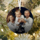 Personalized Christmas ornaments feature elegant trendy merry Christmas script in white color, with family photo on the back, modern and simple.