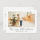Modern elegant minimal holiday postcard features one large of your favourite photo in curve corner frame, black script calligraphy "Merry Christmas" with classic serif lettering. Add your custom message or delete the text for handwritten message on the back of the postcard.