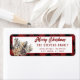 modern script red Merry Christmas pine floral. Modern attractive professional design with contemporary touch. A touch of elegance and style. Customise with your monogram initial, name and address details.