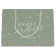 Modern Script Merry Christmas Snow Sage Green Name Large Gift Bag