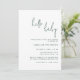 Our elegant and pretty baby shower invitation features modern calligraphy and modern typography in white on a green background. In invitation your guests would love to receive. All the elements on this card are fully editable both text and background colours. Simply click the "Customise with our Design tool" button nested under the "Personalise" link to edit!
