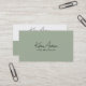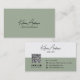 This modern and minimalist business card design features a sophisticated two-tone layout with a sage green and crisp white colour scheme. The front showcases a sleek, handwritten-style name or business name in an elegant script font, paired with a clean, professional sans-serif font. The back maintains a cohesive aesthetic, incorporating essential contact details, a scannable QR code for easy digital access, and social media icons (use the design tool to remove any irrelevant icons) for a contemporary touch. Perfect for professionals, entrepreneurs, and creatives, this stylish and customisable design exudes professionalism and elegance while maintaining a modern, approachable feel.