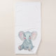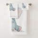 Modern script monogram cute animal elephant blue and white bath towel set.