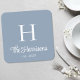 Modern Script Monogram Dusty Blue Square Paper Coaster