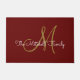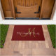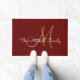 A Modern script gold white monogram on burgundy, large doormat, for your entryway.