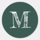 Modern Script Monogram Initial Dark Green Classic Round Sticker
