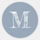 Modern Script Monogram Initial Dusty Blue Classic Round Sticker