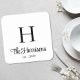 Modern white coaster with your monogram name showcased in a stylish script. Add an initial and the year established or other text in elegant serif typography.
