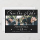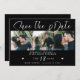 Trendy minimalist stylish black and white modern calligraphy script wedding save the date card with 3 photo collage. +++++++++++ Suitable for any season and theme. ++++++++++ Easy to personalise with your pictures and details on both sides.