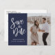 Modern Script Navy Minimalist Photo Save the Date Announcement Postcard