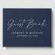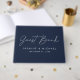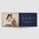 Simple, elegant wedding guest book featuring a handwritten white script mixed with modern lettering against a navy background. Personalise the minimalist wedding guest book with your names and wedding date. Add custom text to the spine of the guest book such as your names, the date, etc. The back of the guest book displays your horizontal engagement photo. The chic navy wedding guest book is perfect for modern weddings.