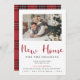 Script New Home for Holidays Photo Moving Holiday Card Back with Christmas Holiday Tartan Plaid Pattern