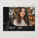 Modern script one photo black graduation thank you postcard