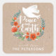 A pretty Christmas gift sticker featuring a dove in a floral wreath with the words Peace on Earth. The Christmas sticker is designed in kraft, red and white. Personalise it with your name, for your Christmas gifts this year. Designed for you by Blackberry Boulevard.