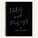 Modern Minimal Black And White notebook, with modern script typography "Notes and Musings" to inspire your creative ideas and thoughts, personalised with your name on the front and your monogram with name on the back. Perfect for journalling or planning. Add your own information by following the "Personalise this template" link.