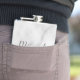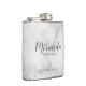 This flask features personalised bridesmaid's name in grey modern script font style with title and wedding date in grey modern sans serif font style on white marble background.