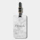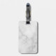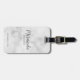 This luggage tag features personalised bridesmaid's name in grey modern script font style with title and wedding date in grey modern sans serif font style on white marble background.