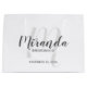 featuring personalised bridesmaid's name in grey modern script font style and monogram in light grey modern script font style as background with title and wedding date in grey modern sans serif font style.