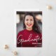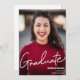 Personalise this modern graduation announcement flat card with your graduate's photo, name, class year, and school name. Include a special greeting on the back, your return address and other details. Modern script font typography, elegant and chic. Share your excitement to family and friends on your grad's accomplishment.