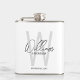 This design features personalised groomsman's name in grey modern handwriting script font style and monogram in light grey modern sans serif font style as background, with wedding details in grey modern sans serif font style, on white background.