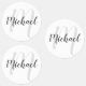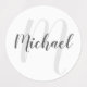 feature personalised name in grey modern script font style and monogram in light grey modern script font style as background