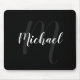 Modern Script Personalised Monogram and Name Black Mouse Pad