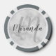 featuring personalised name in grey modern script font style and monogram in light grey modern script font style as background