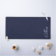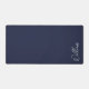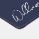 This design features personalised name in white modern handwriting script font on navy blue background.