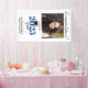 This vertical banner features a graduation design with a square photo for a picture of the graduate. Personalise this modern banner with the graduate's name. The text reads "Congratulations! Class of 2025 Grad" with the year appearing in blue. The design is accented with calligraphy text and a graphic of a graduation cap.
