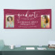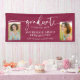 Modern Elegant Script Graduation Photo Burgundy Maroon Banner to announce your graduate in style! Celebrate your graduate in style with this customisable photo graduation banner featuring a bold script “graduate” design, two photo slots, and clean serif text for name and school details. It’s the perfect modern decoration for a grad party, open house, or photo backdrop!
