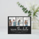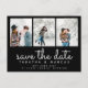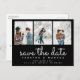 spread the joyful news of your forthcoming wedding with this classy and stylish save the date. featuring on trend script text and complementary bold text which can be edited to show your details. space for 3 chosen photos make this extra speical.