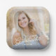 This graduation party paper plate features a square photo that fills the entire plate and is accented with modern script text on top of the photo. Personalise with the graduate's name and graduating year.