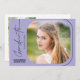 This modern script graduation party invitation features handwriting style text and a square photo with rounded corners on a light purple background. The backside offers a second vertical photo and custom text for you to add your party invitation details.