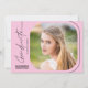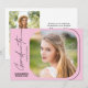 This modern script graduation party invitation features handwriting style text and a square photo with rounded corners on a light pink background. The backside offers a second vertical photo and custom text for you to add your party invitation details.