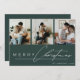 Modern Script Photo Collage Green Merry Christmas Holiday Card