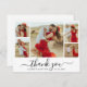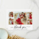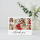 Modern, Script Wedding 5 Photo Collage Thank You Card in Black and White. Elegant minimalist, stylish wedding card template featuring five (5) grid photo collage and a "Thank You" cursive hand lettering script calligraphy swash tail font. Personalise your name and thank you message.