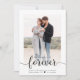 Simple and elegant, this photo engagement announcement is the perfect way to let your family and frineds know the good news before you have a wedding date set. The card features a photo on a clean white background with the names of the couple and the date and place they got engaged, and a trendy script font announcing the “beginning of forever.” The back is blank for versatility.