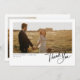 An elegant and modern wedding thank you card. Your horizontal photo on the front will be cropped to fit the rectangle shape, and you can personalise the template with your first names and wedding date. Re-colour, re-size, and re-position the "Thank You" text as needed. On the back of the card, you have room for a vertical photo as well as a heartfelt personalised message and signature line. © Kimbellished, LLC