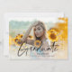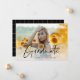 A Modern Script Photo Graduation Announcement with handwritten font full bleed horizontal photo on the front with name and graduation details. The back has a modern grid pattern. Click the edit button to customise this design.