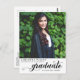 Announce your graduation to family and friends with these trendy graduation announcement postcards! This modern stylish graduation announcement features beautiful script text spelling out the word graduation with a text template to personalise with the name, school and graduating year. Add additional message or click '' customise further''to edit this template.