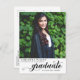 Announce your graduation to family and friends with these trendy graduation announcement cards! This modern stylish graduation announcement features beautiful script text spelling out the word graduation with a text template to personalise with the name, school and graduating year. Add additional message or click '' customise further''to edit this template.