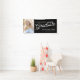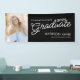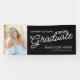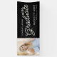 This graduation banner features a vertical photo on a black background. The design is accented with modern handwritten style script.