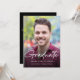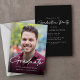 This is a modern college graduation party invitation using a classic script font overlay along with a single minimalistic photo on the front. The reverse side includes a message that you can personalise. Please contact the designer for any queries related to this design.