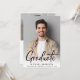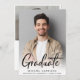 Modern graduation party invitation featuring the grad's photo overlayed with "Graduate" in a contemporary bold script. Add their name, class year and school in simple typography. On the back, add an additional photo and the party details.