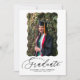 Celebrate your academic milestone in style with the Modern Script 2 Photos Graduation Party Invitation. This chic invitation blends elegant, flowing script typography with a clean, contemporary layout—featuring two distinct photo placeholders for showcasing your favourite memories. Ideal for graduation parties, it offers a personalised touch that lets you highlight both your achievements and your unique journey. With customisable text options and a modern design aesthetic, this invitation is perfect for setting the tone of an unforgettable celebration.
